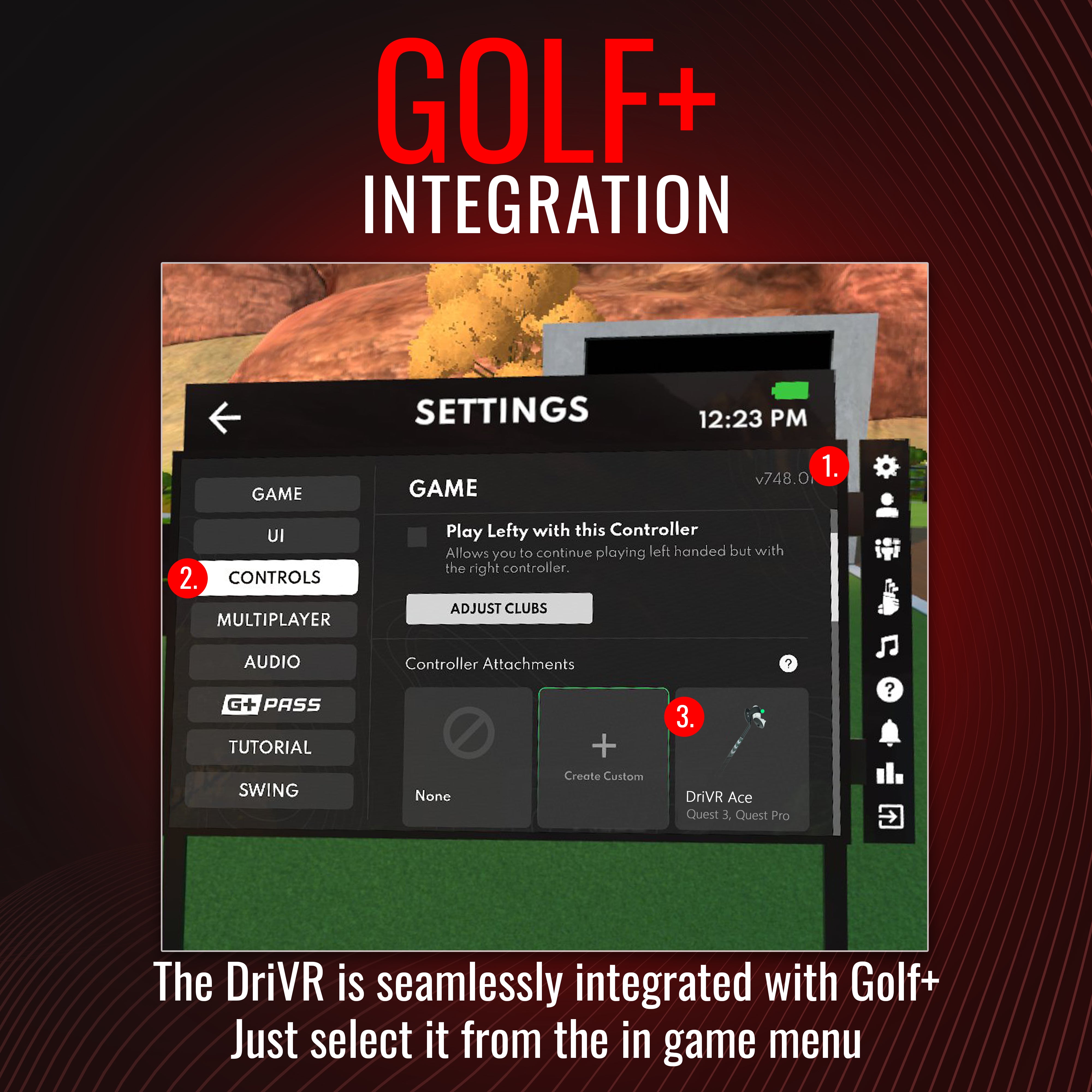 • Immersive: The DriVR Ace is a golf club accessory that you can insert your Quest controller into to simulate a real golf club!